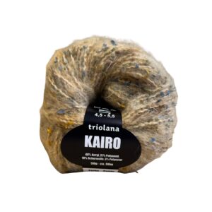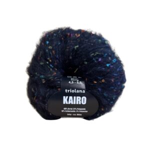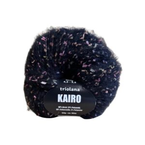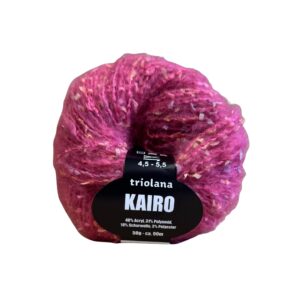 La pelote KAIRO de la marque Triolana, proposée uniquement en sachet de 10 pelotes, présente un fil fantaisie légèrement pailleté. Ce fil se caractérise avant tout par son aspect poilu, sa légèreté et sa grande douceur. Cette laine est idéale pour toutes vos créations automnales et hivernales.