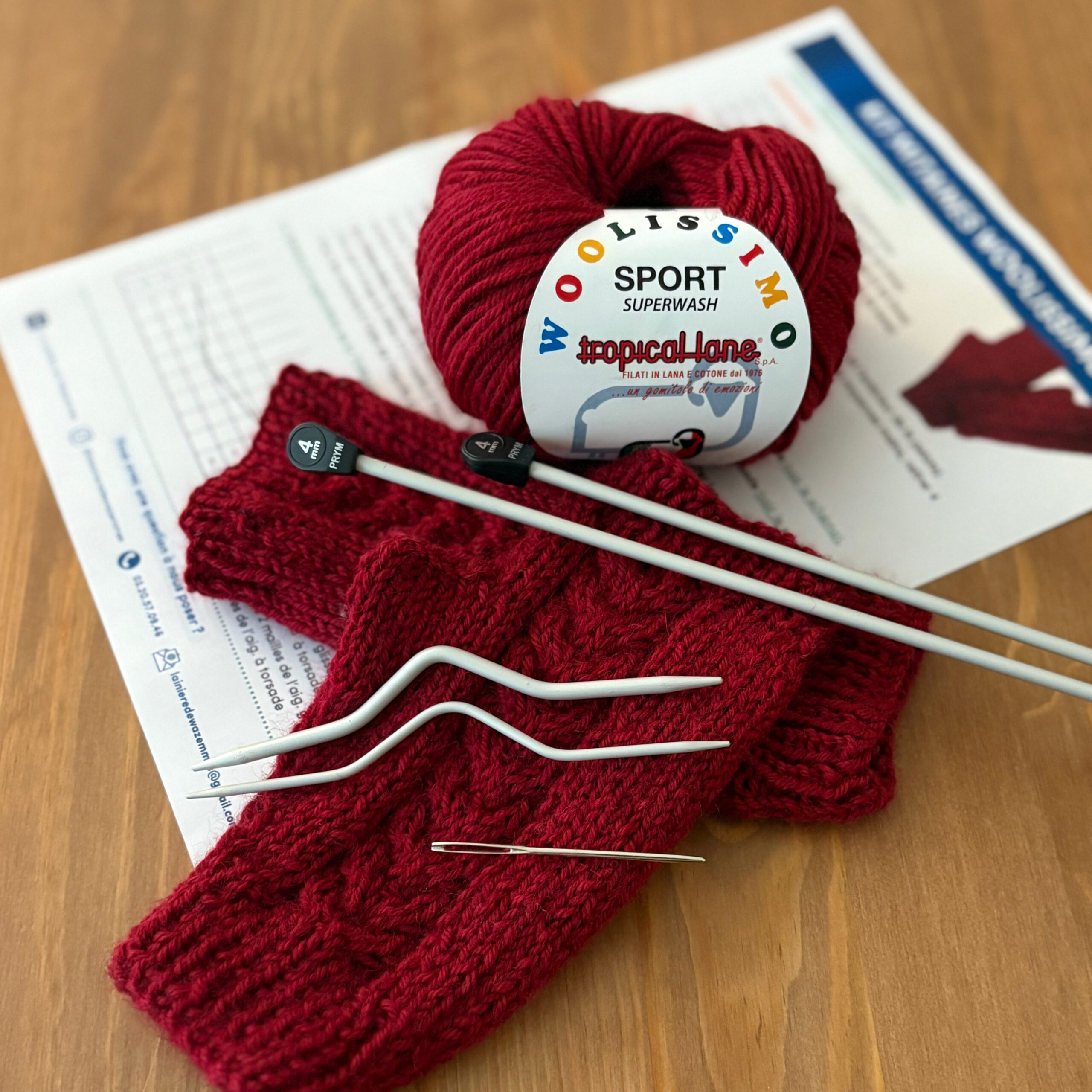 Attention, les aiguilles à tricoter n°4, les aiguilles à torsade ainsi que l’aiguille à laine à bout rond qui seront nécessaires à la réalisation des mitaines ne sont pas incluses dans le kit de base. Pour les ajouter, il vous suffit de cocher les cases correspondantes dans la composition de votre kit avant de l’ajouter au panier.