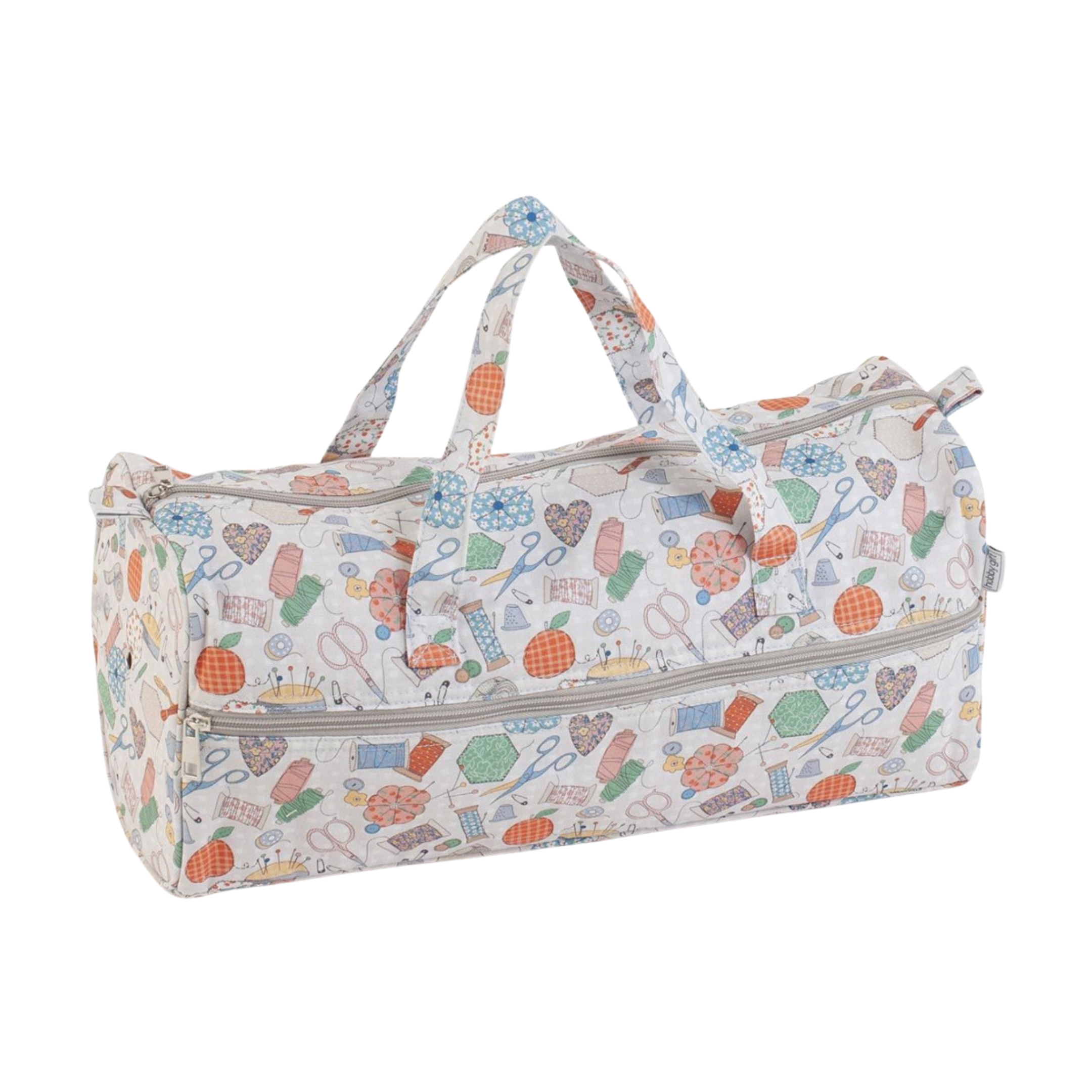Laissez-vous séduire par ce grand sac à ouvrage, aussi joli que pratique, de la marque Hobby Gift ! Ce sac à fermeture zippée et à double poignée est fabriqué avec un tissu imperméable en Coton enduit de PVC mat avec un imprimé accessoires de couture