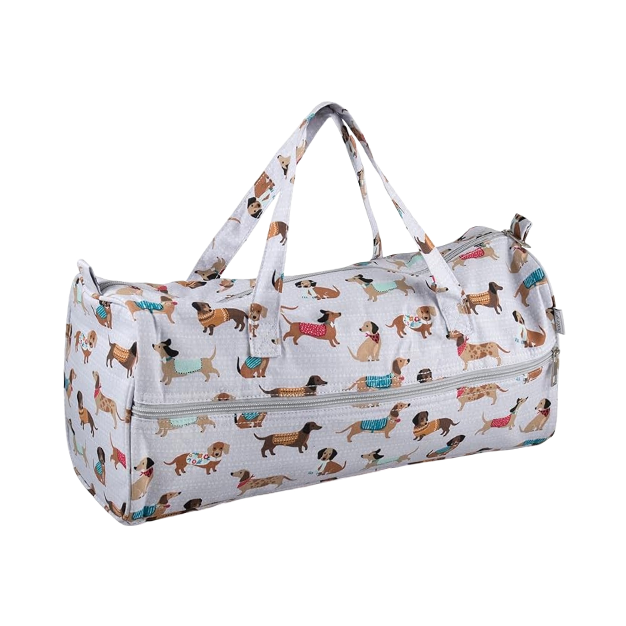 Laissez-vous séduire par ce grand sac à ouvrage, aussi joli que pratique, de la marque Hobby Gift ! Ce sac à fermeture zippée et à double poignée est fabriqué avec un tissu imperméable en Coton enduit de PVC mat avec un imprimé chiens teckels.