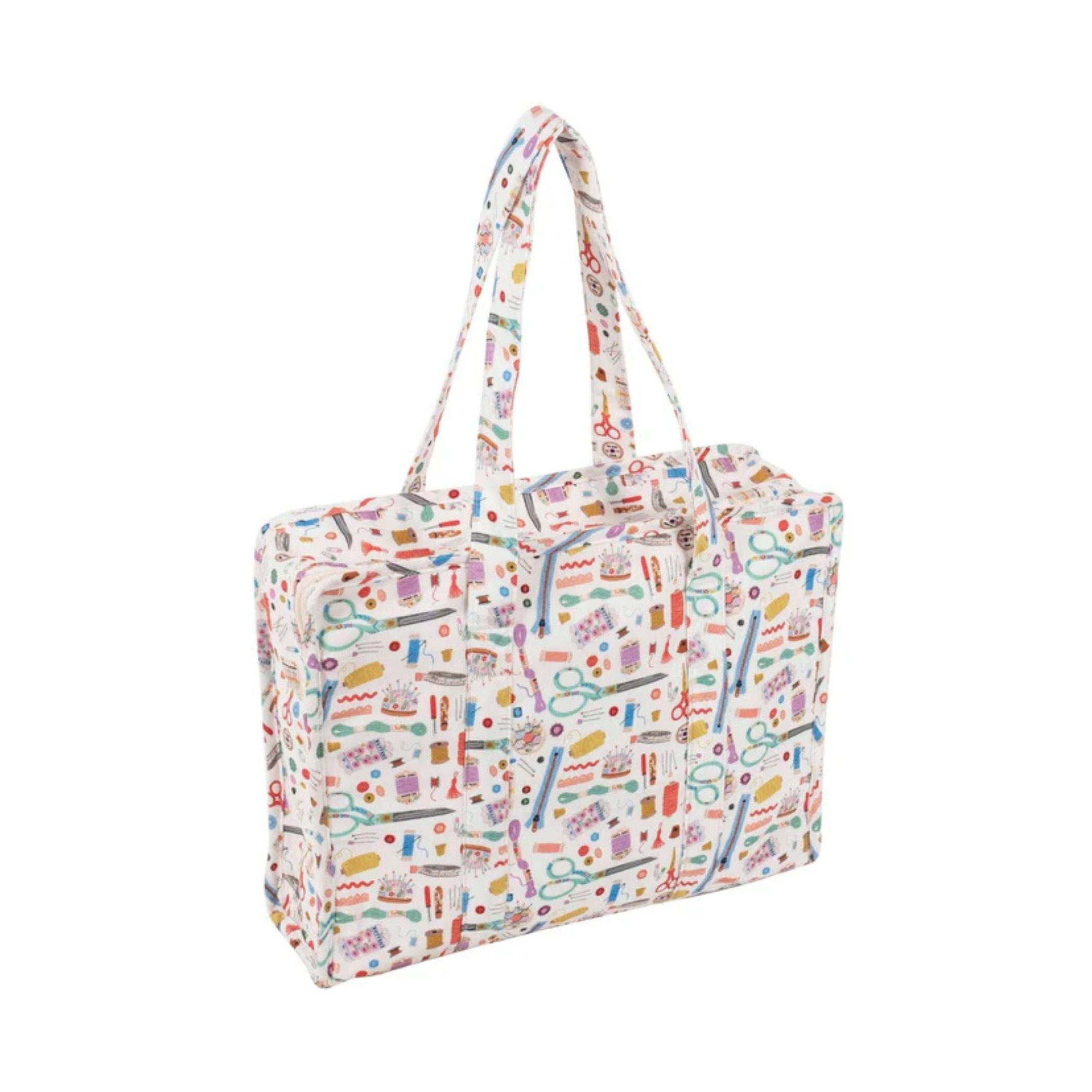 Laissez-vous séduire par ce grand sac de rangement multi-poches tout en un Loisirs créatifs de la marque Hobby Gift ! Ce sac est habillé d'un tissu 100% Coton orné d'un imprimé accessoires de loisirs créatifs. Il est idéal pour ranger et transporter votre matériel de tricot ou de crochet ainsi que vos projets en cours.